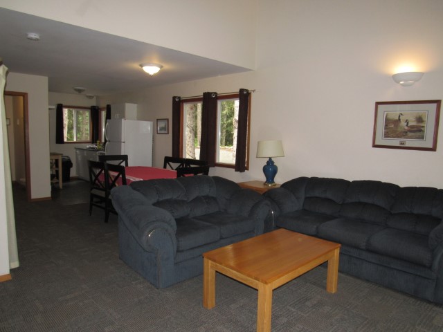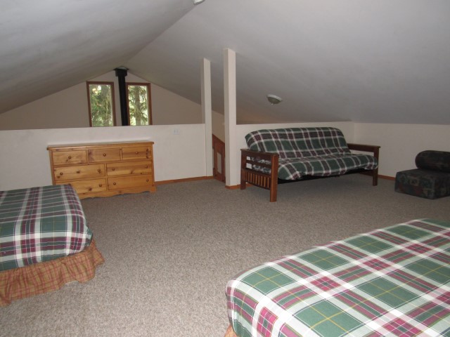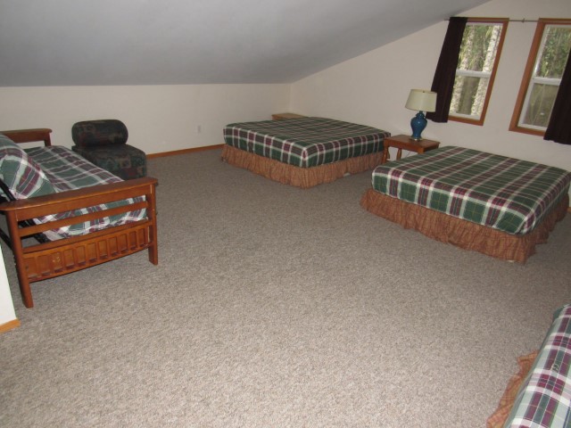 This cabin sleeps up to 6 adults with four queen sized beds, and two full size beds (one hide-a-bed and a futon). It has a full kitchen with appliances including a fridge, stove, microwave and also a BBQ*. Note: This cabin's