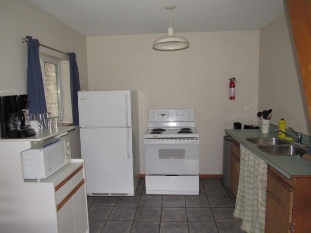 This cabin sleeps up to 4 adults with 2 queen size beds and a full size hide-a-bed. It has a full kitchen with appliances including a fridge, stove, microwave and also a BBQ**. Note: This cabin's