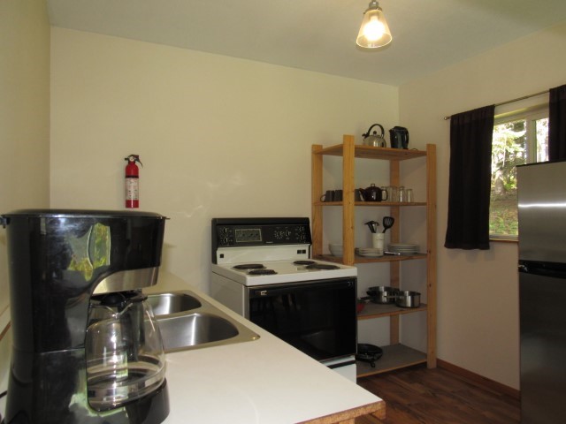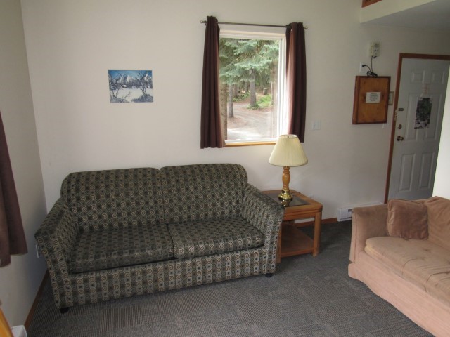 This cabin sleeps up to 4 adults with 2 queen size beds and a full size hide-a-bed. It has a full kitchen with appliances including a fridge, stove, microwave and also a BBQ**. Note: This cabin's